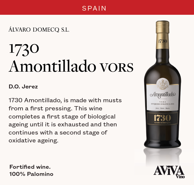 [0] => 1730 Amontillado, is made with musts from a first pressing. This wine completes a first stage of biological ageing until it is exhausted and then continues with a second stage of oxidative ageing.